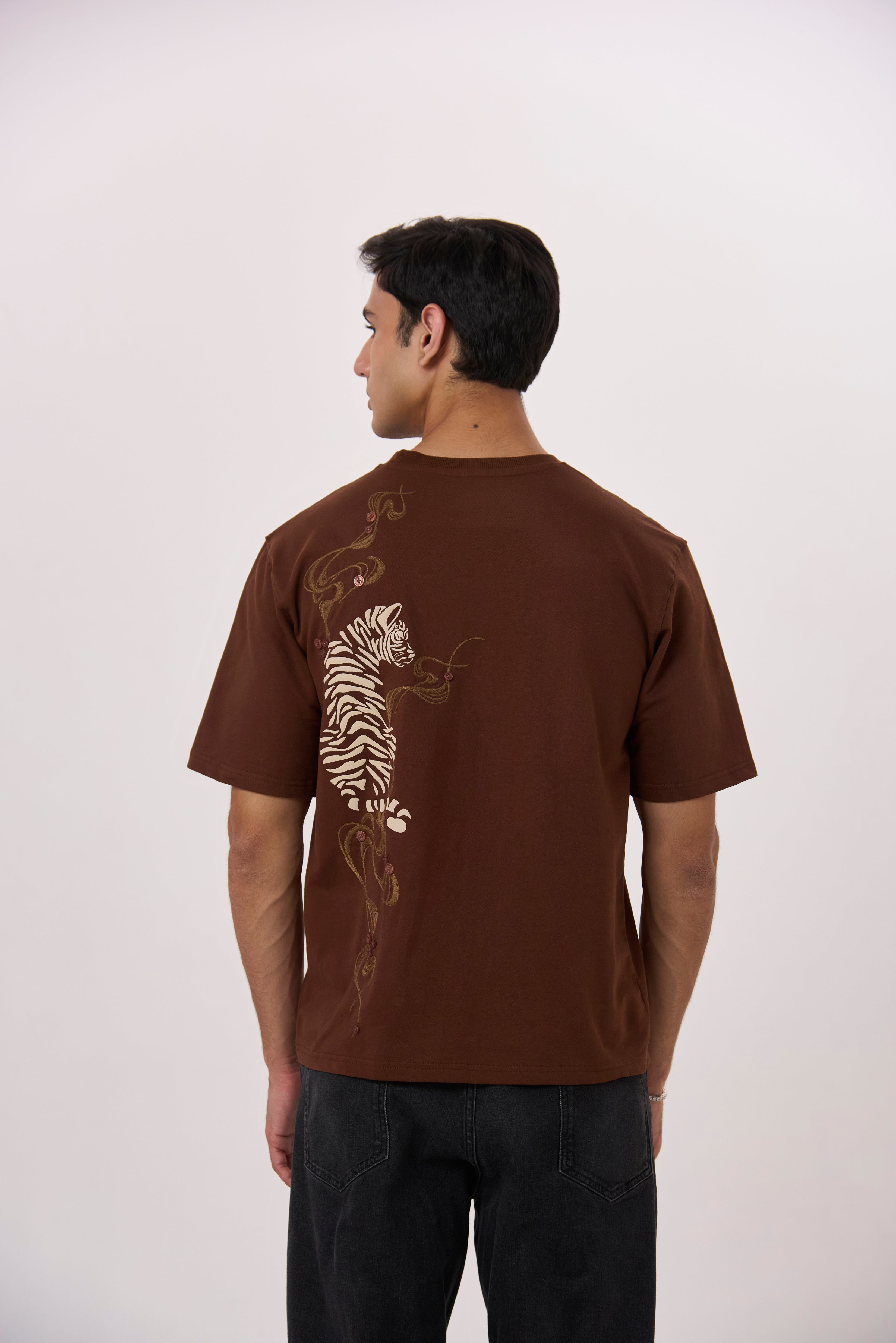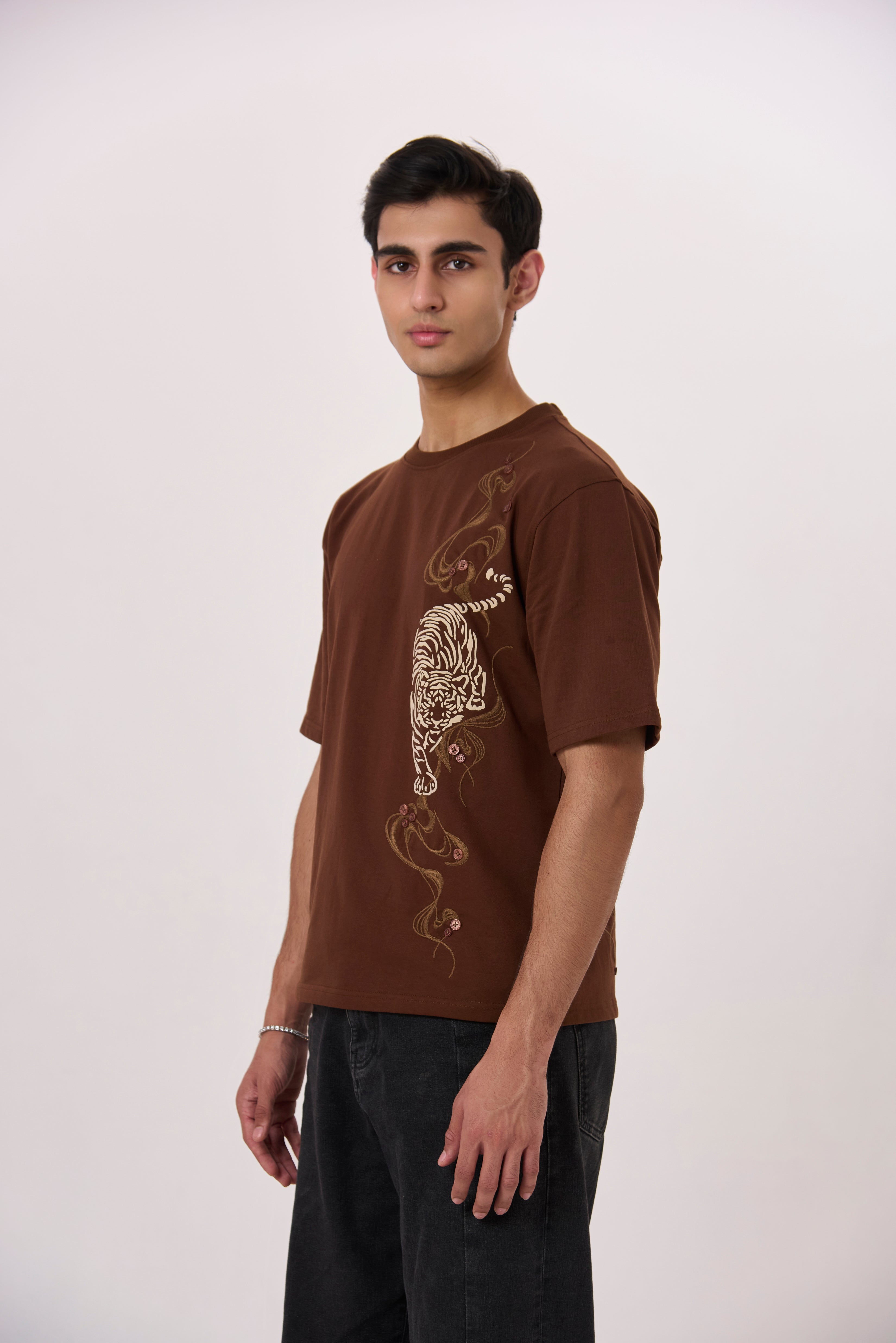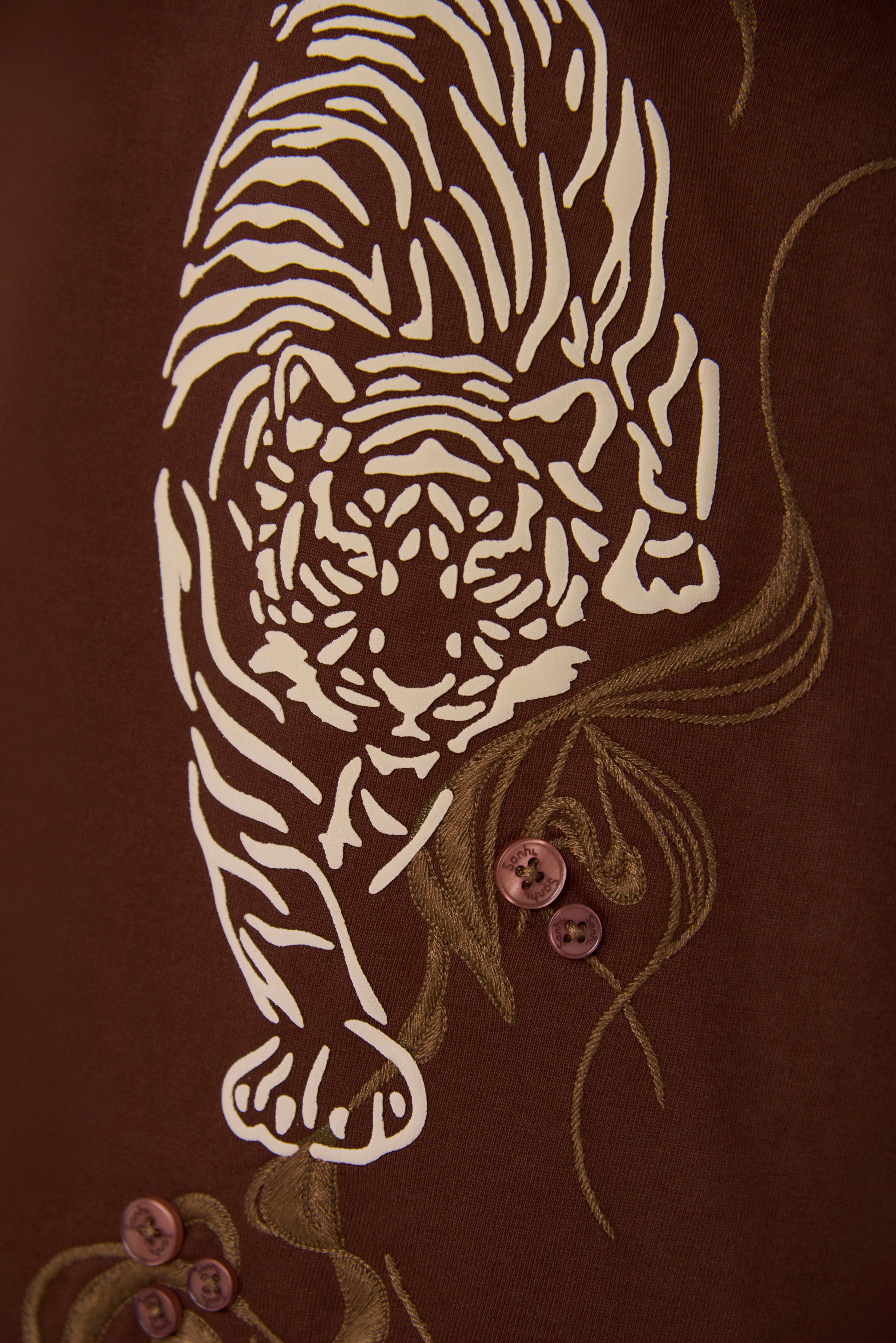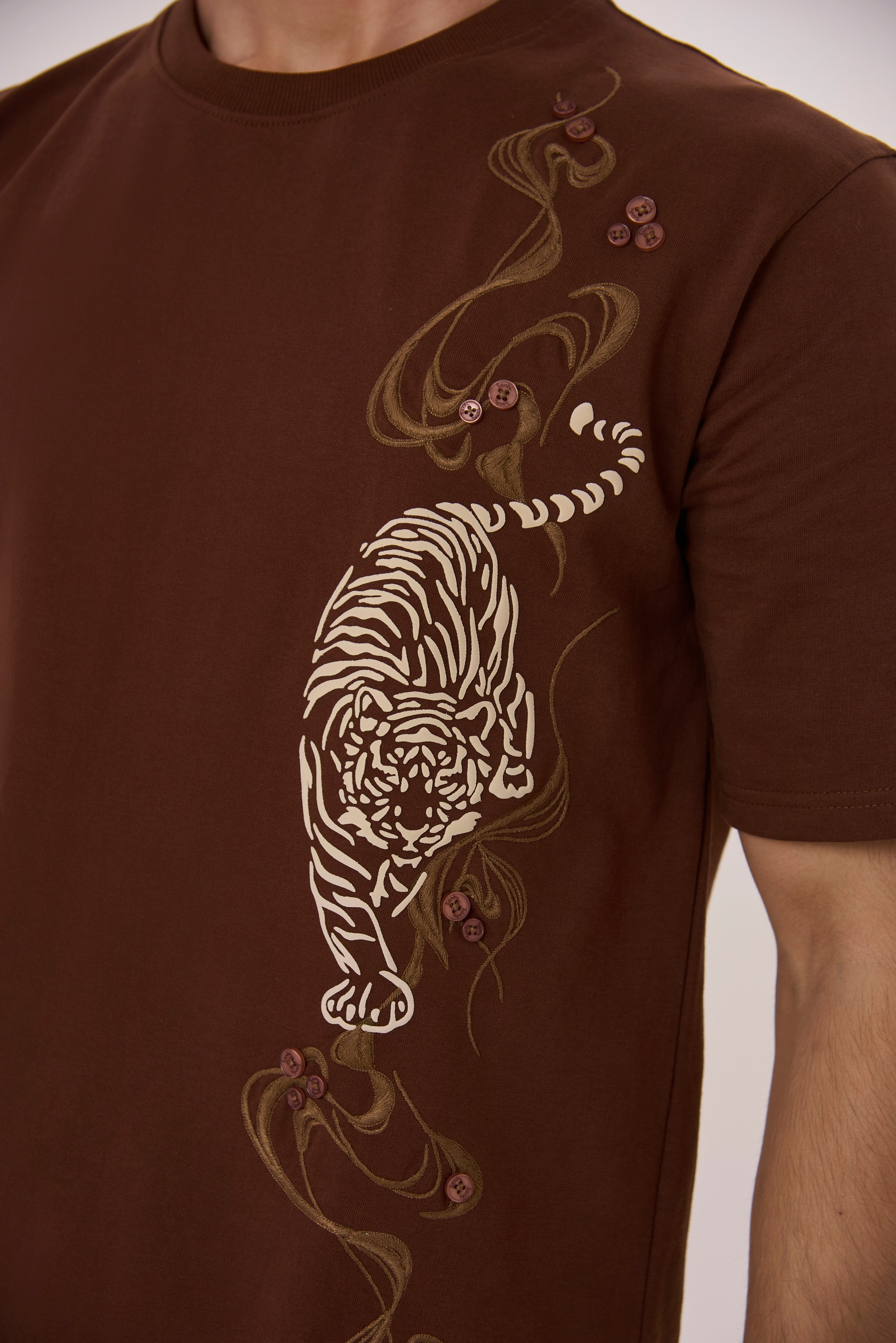 Our unisex relaxed fit cotton blend t-shirt crafted with a flock print technique and emphasised with the signature button detail, takes a new twist on modern streetwear.