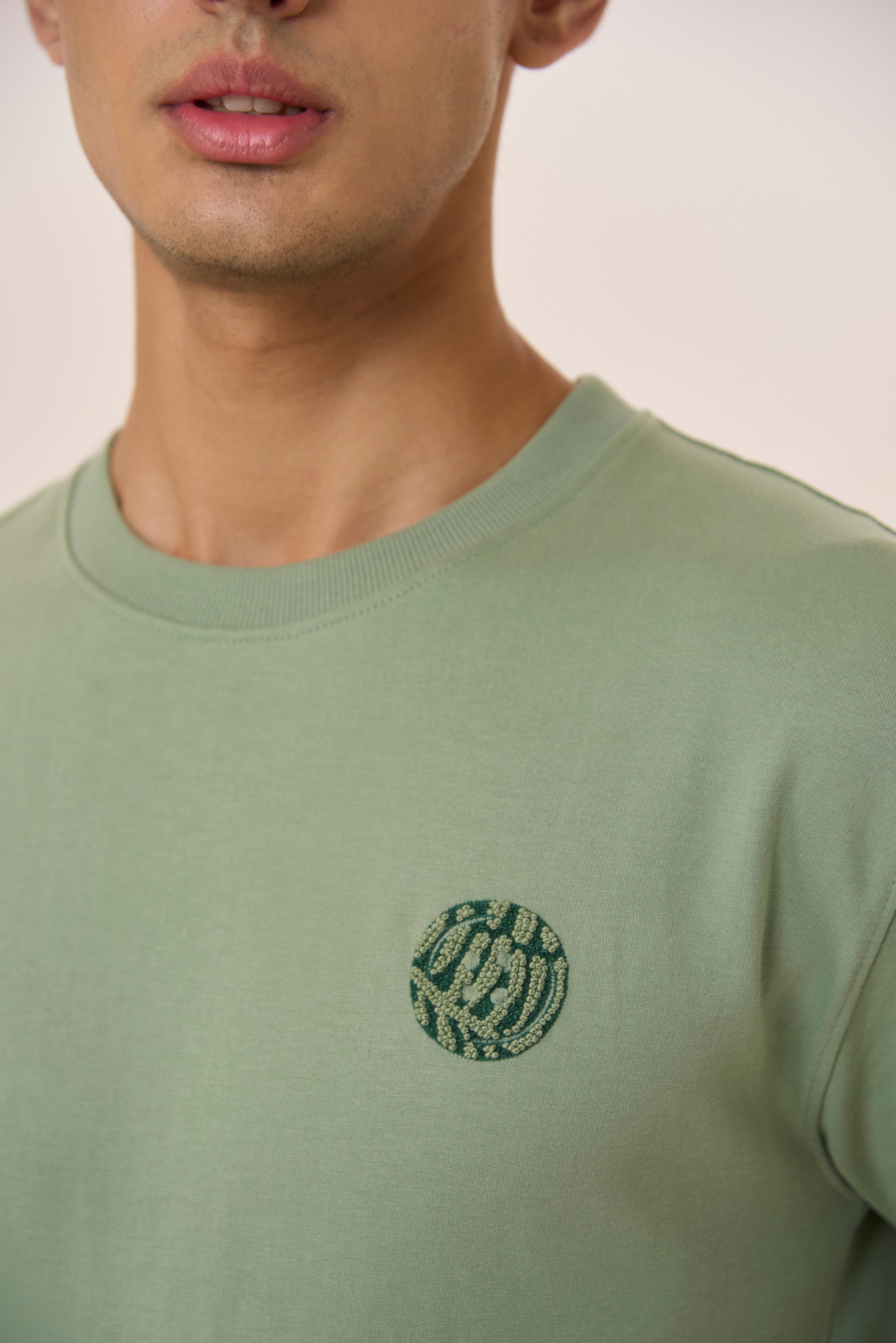 Our unisex relaxed fit cotton blend t-shirt showcases intricate thread work set in bold typography on the back and a complimenting emblem in the front with signature button detail, a new defintion of luxury streetwear.